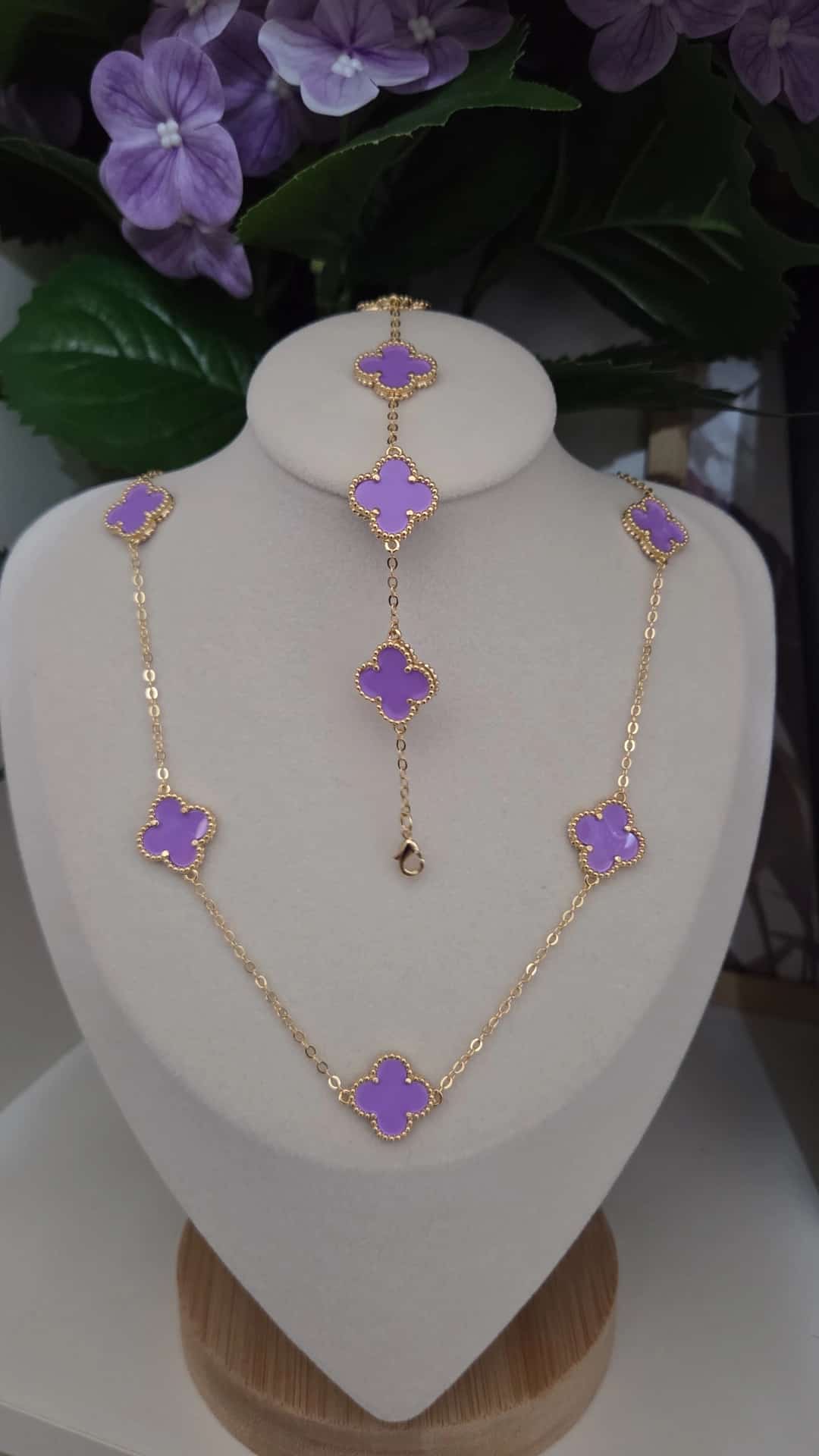 Five flowers clovers Black Onyx Clover Necklace – 14k Gold Plated